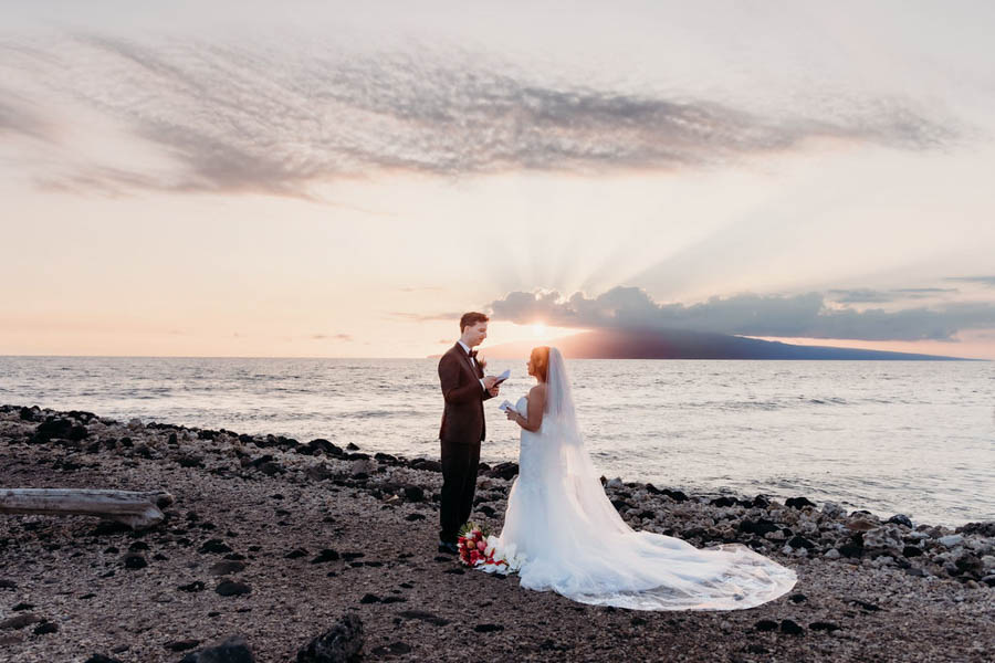 As the sun dipped toward the horizon, Brianna and Patrick later shared romantic, personal vows privately, allowing them a moment that belonged to just the two of them. It was intimate, emotional, and beautifully timed with Maui’s glowing sunset.