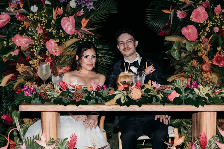 From the moment guests arrived, it was clear this wedding would be anything but ordinary. The estate came alive with elaborate floral installations in bright, tropical hues, framing the ceremony and reception spaces in vibrant color. Every detail felt intentional, elevated, and expressive—perfectly reflecting Brianna and Patrick’s personalities and love for joyful celebration.