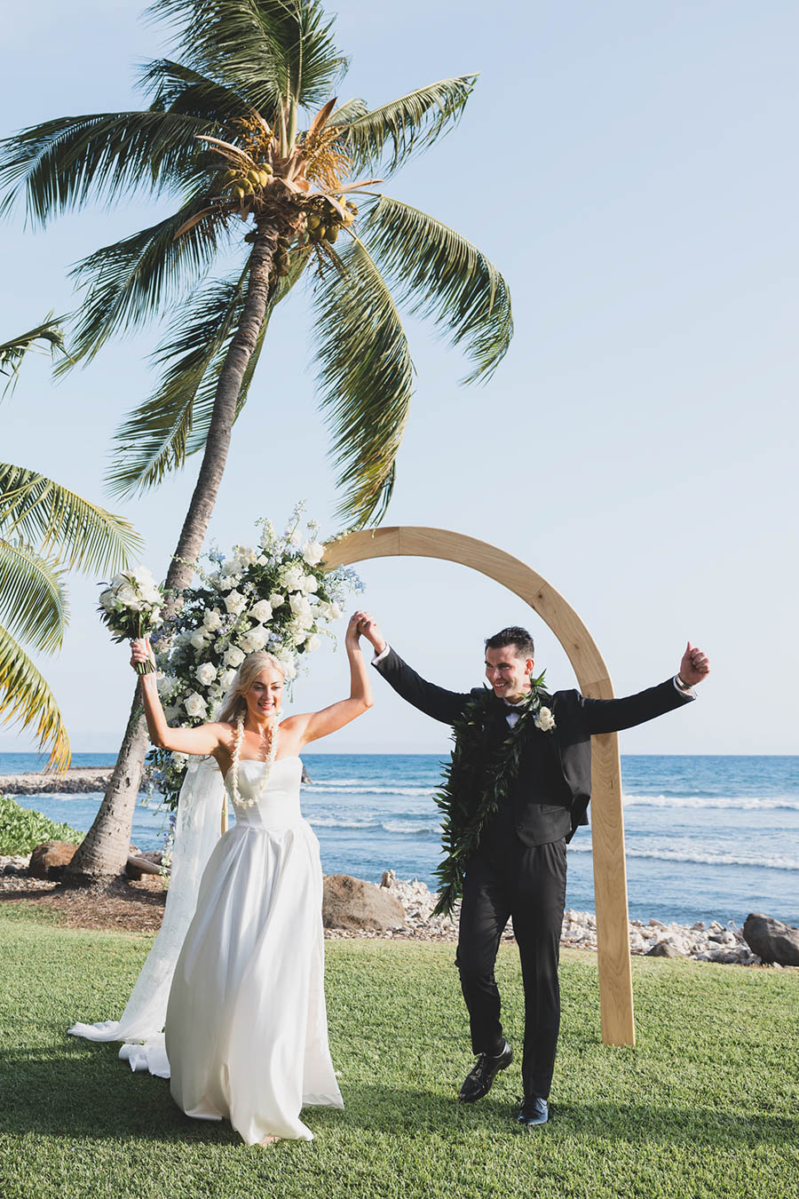 Photographing your gown — hanging gracefully in the plantation house’s historic architecture or catching the Maui breeze by the oceanfront lawn — captures the anticipation before you step into it. These images honor the journey that led you there.
